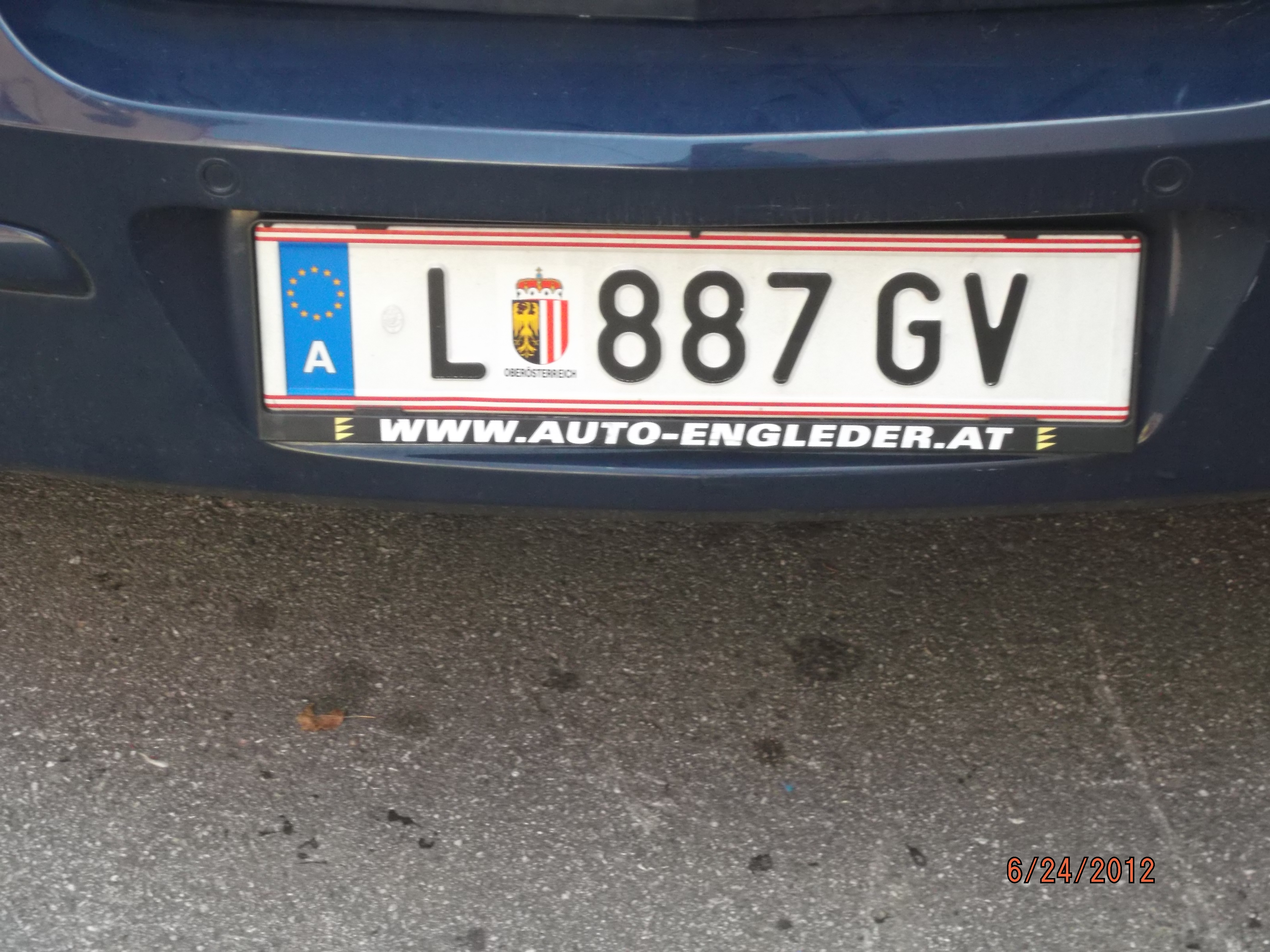 Typical Austrian car license plate with Austrian symbol and association with the Euro Zone.