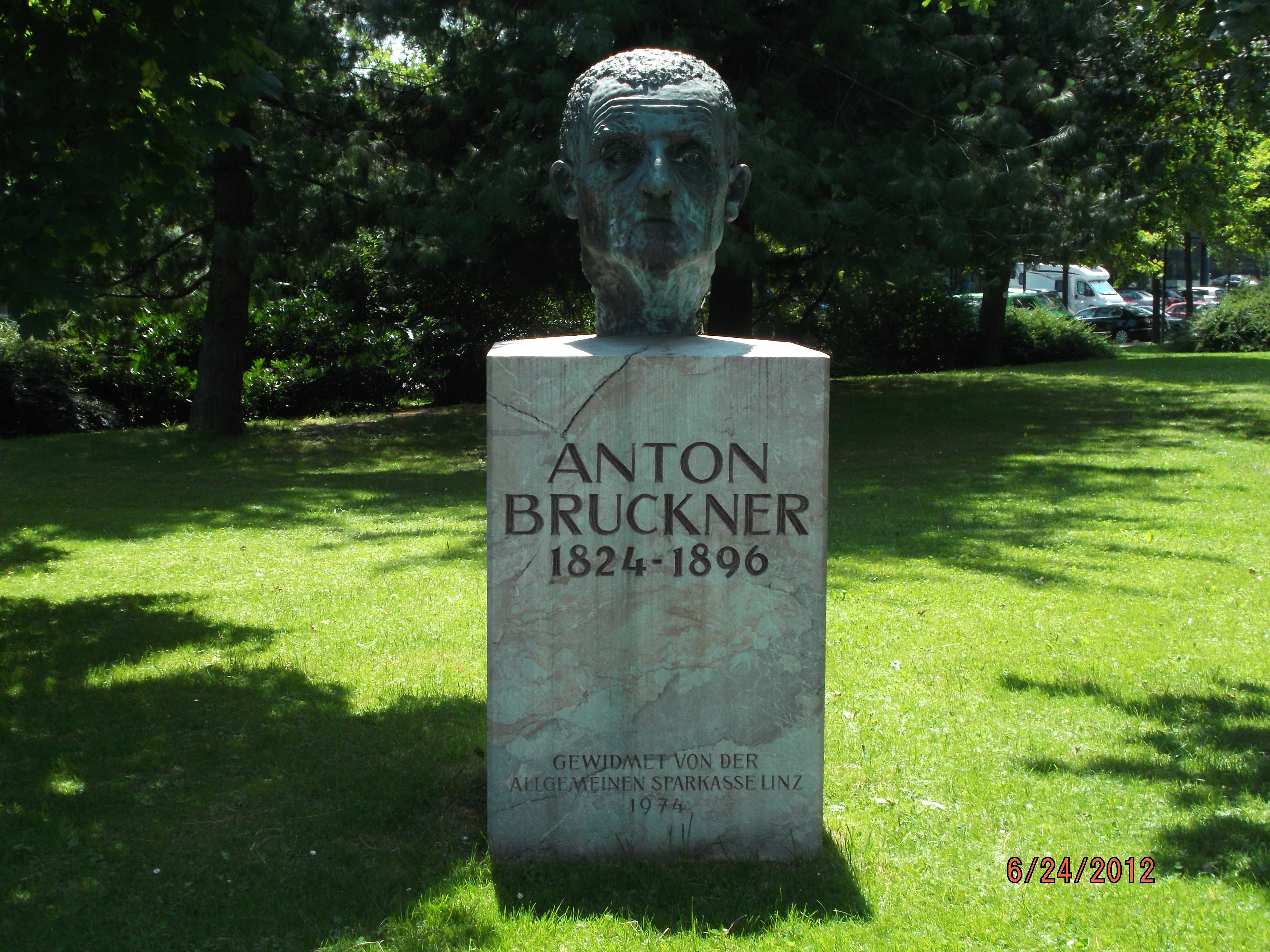 bust of Anton Bruckner on grounds of Brucknerhaus.