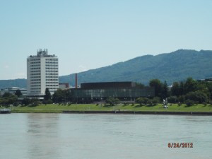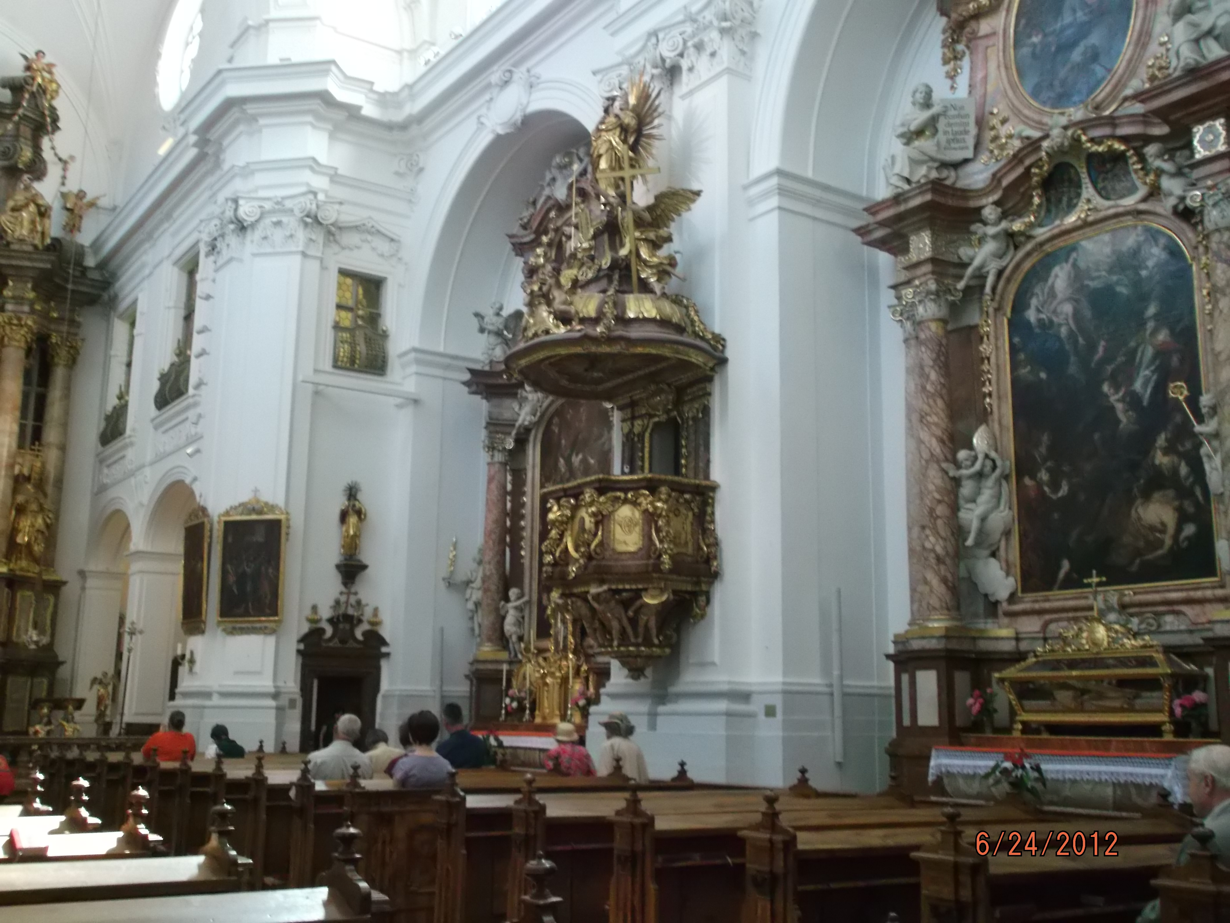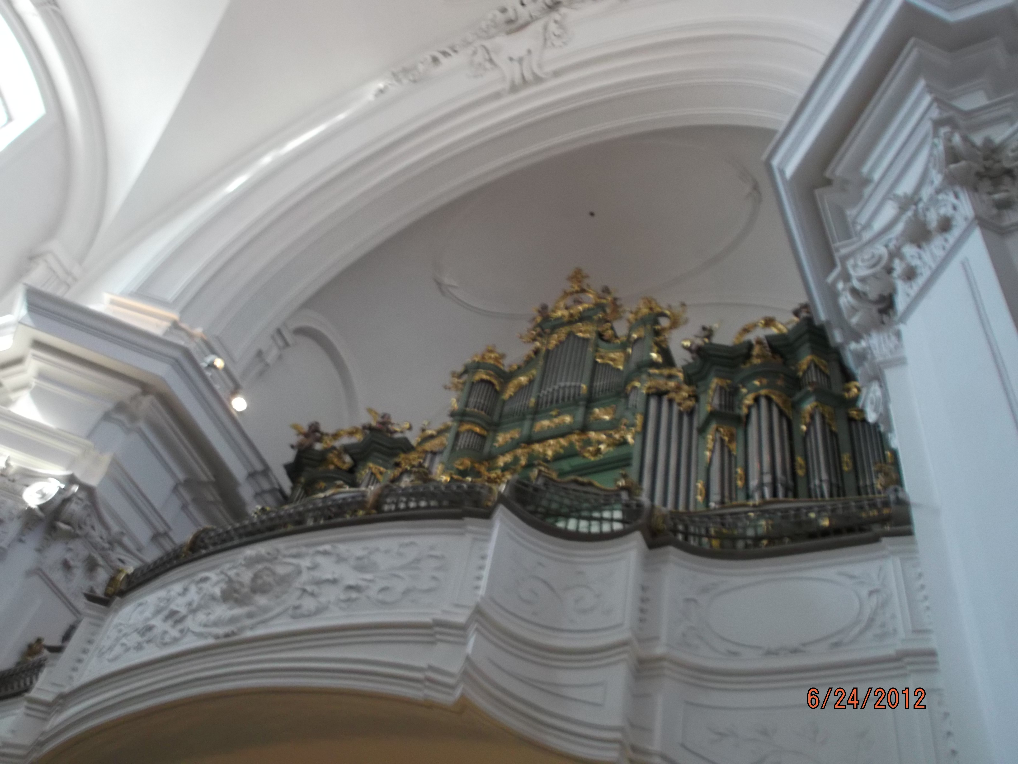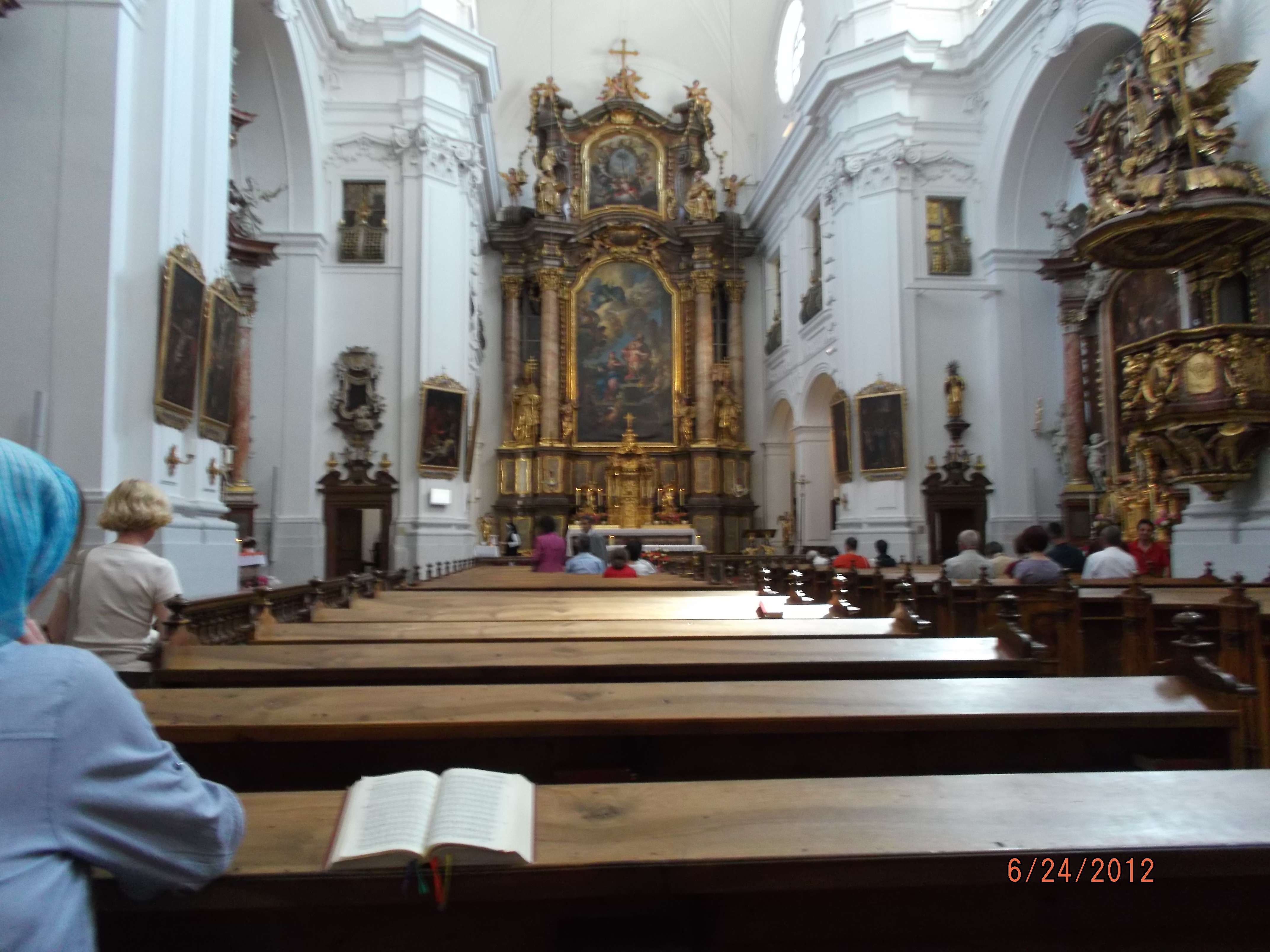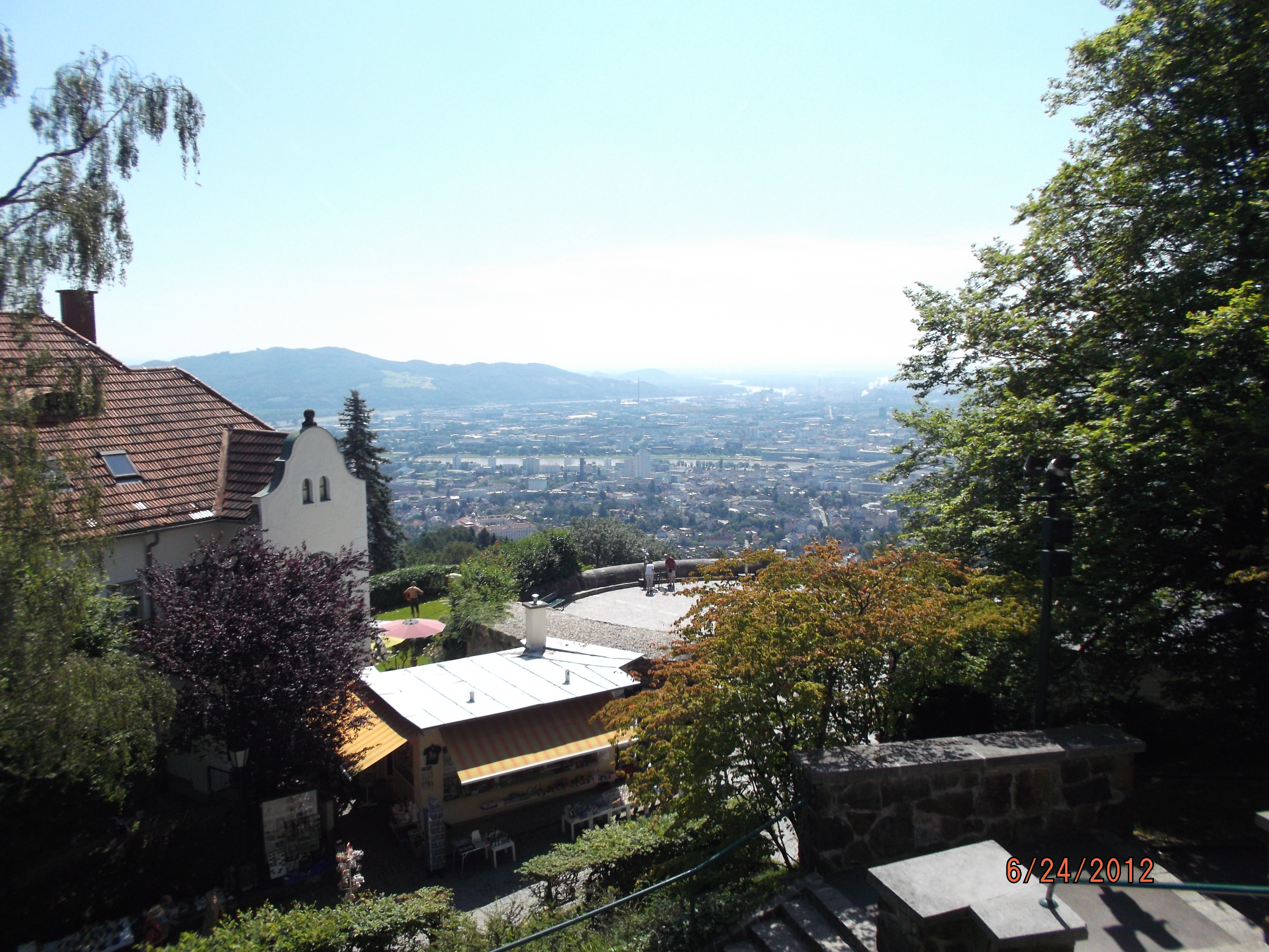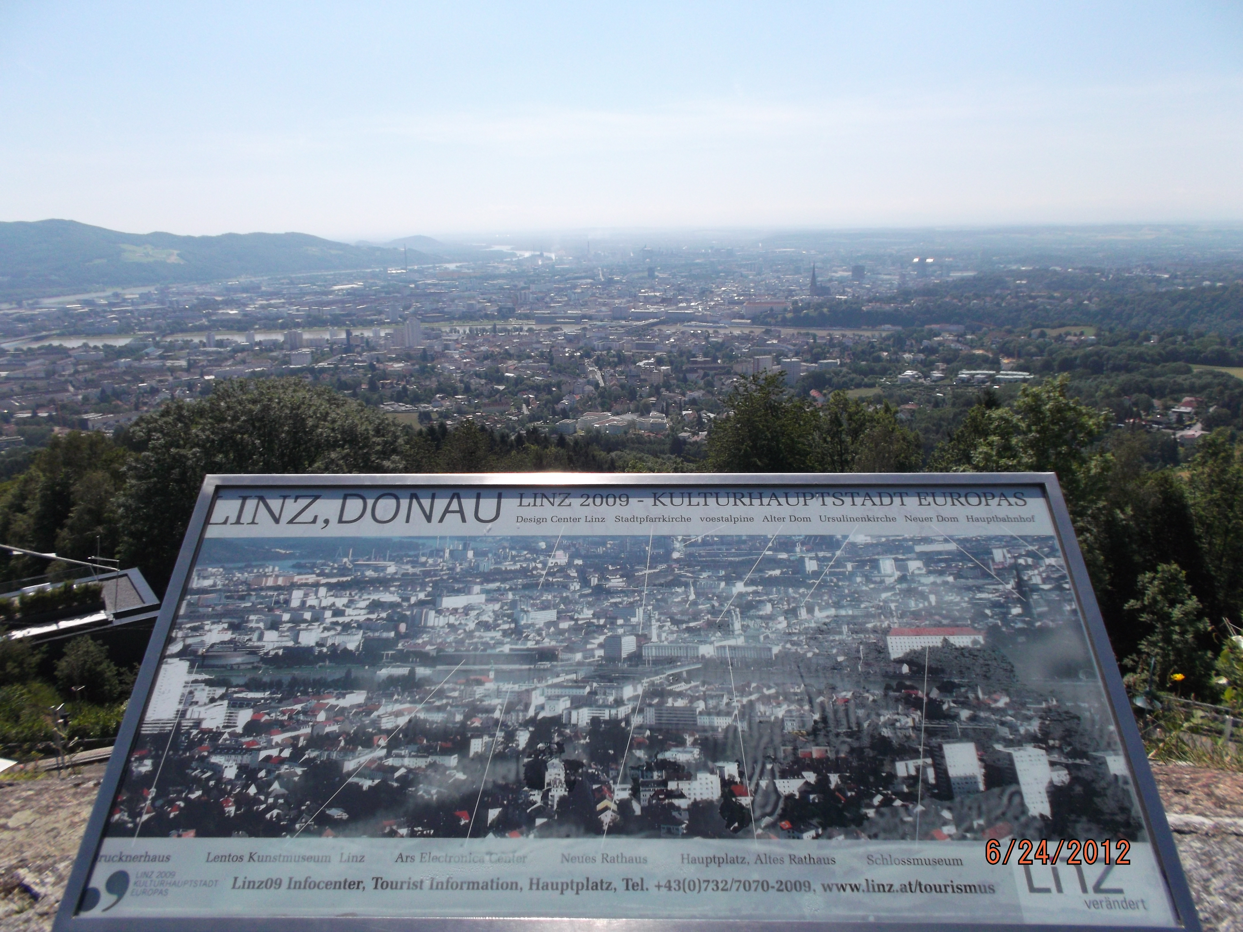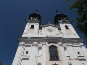 Today I went to the 9:00 AM mass at the Church of the Carmelites (a beautifully restored Baroque church with much ornamentation and a working pipe organ).  I then rode the tram up to Postlingberg Church (the highest point in Linz and a commanding view of the valley), toured the Arts Electronica building, and had goulash and a Linzer torte (oldest cake recipe in the world dating to 1653) with  Jerry and Barbara Young.  I later helped with the Young Tuba Artist competition and finished off the day with an outstanding couscous chicken salad with lemon dressing at McDonalds.