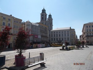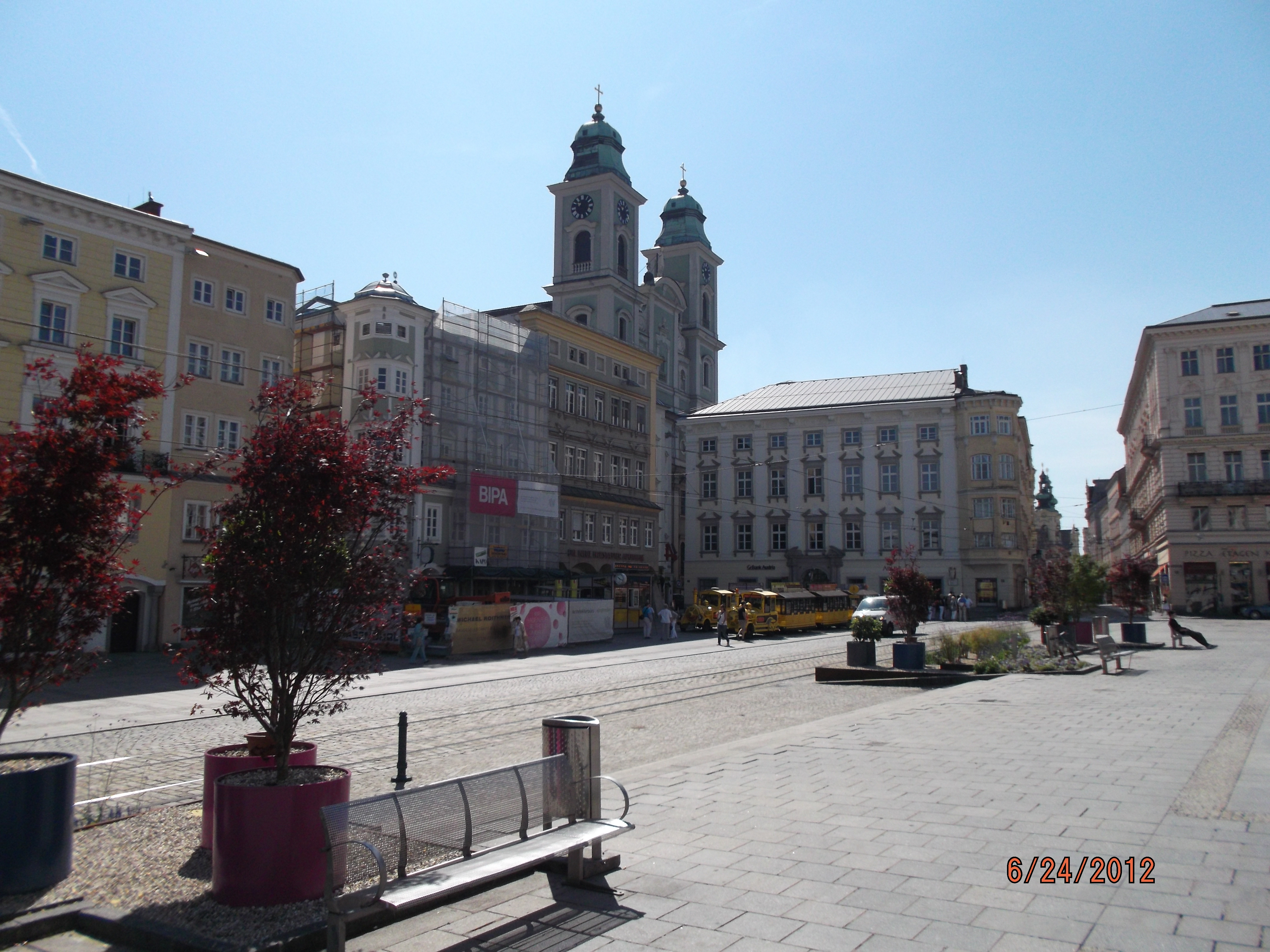 Looking back from Hauptplaz to Jesuitenkirche (the old cathedral)