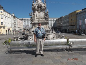 Mark at Trinity Column, Hauptplaz, one of the largest open shopping areas in Austria