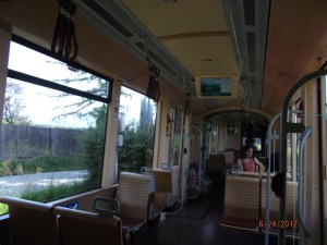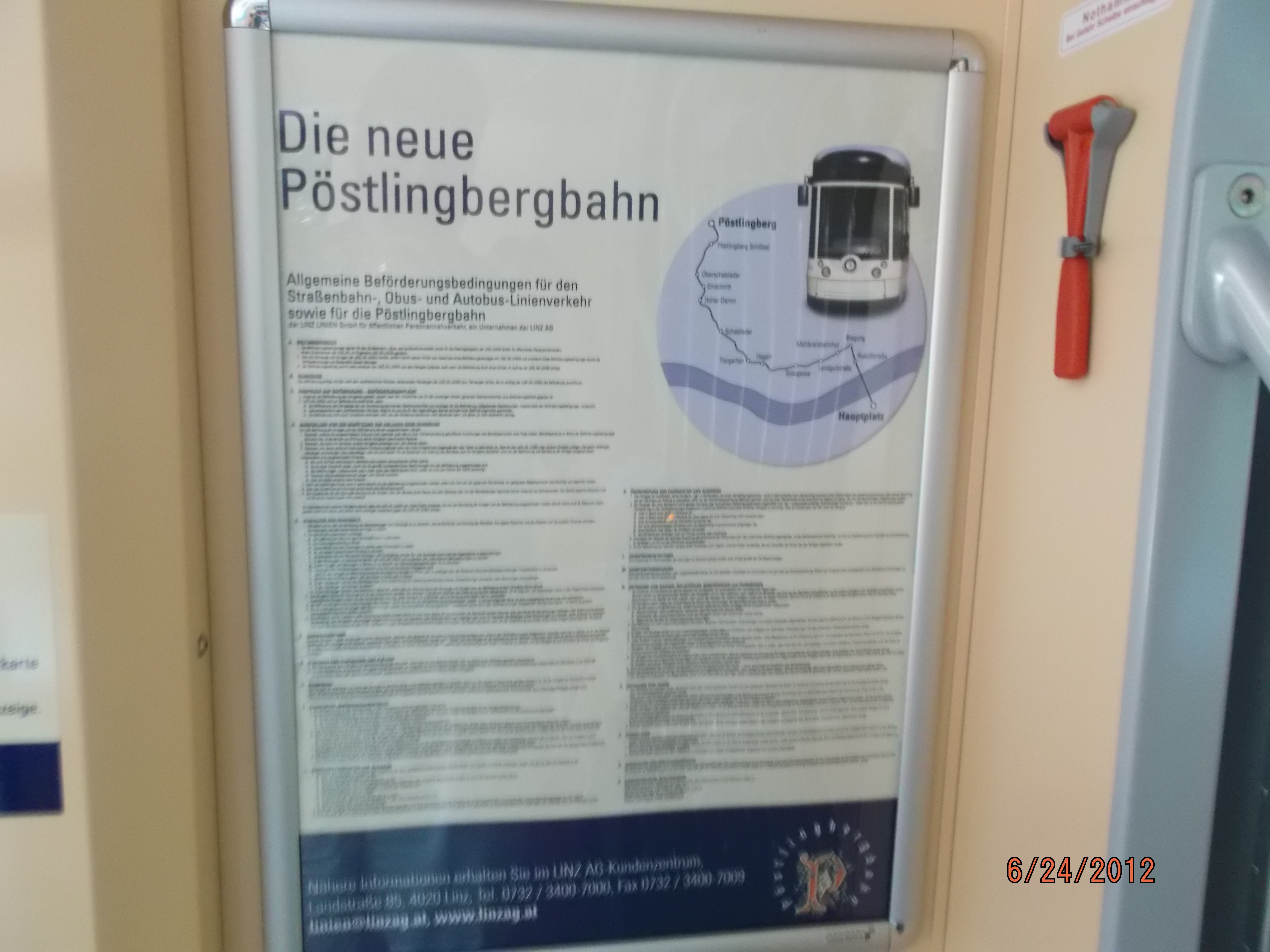 Inside Postlingberg tram – each car had an HD screen with each stop and time listed in order of arrival.  The operator also called out each stop there and back.