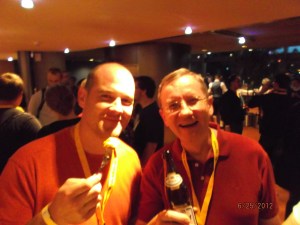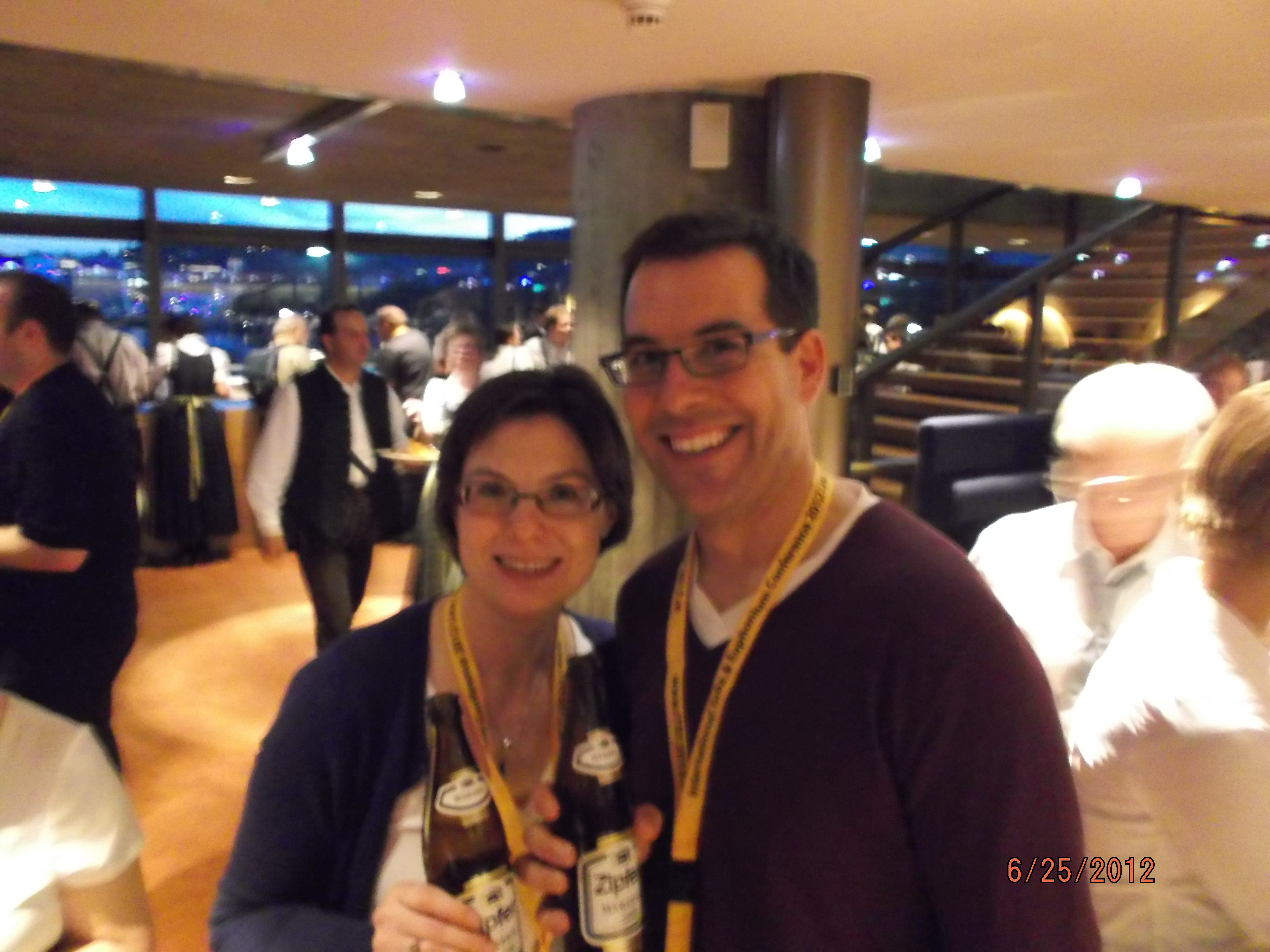 Today is the day Kelly Thomas and I play the Double Concerto for Euphonium and Tuba by James Grant with the Polizeiorchester Bayern, Johann Mösenbichler, conductor. It went extremely well. The entire concert is posted in my Live Recordings section. Below, the first pictures were taken late Monday evening after the “Welcome to Austria” concert during the ITEC dinner that followed. I spent some time with Stacy Baker and Gail Robinson also. They will be playing the Double Concerto in October!